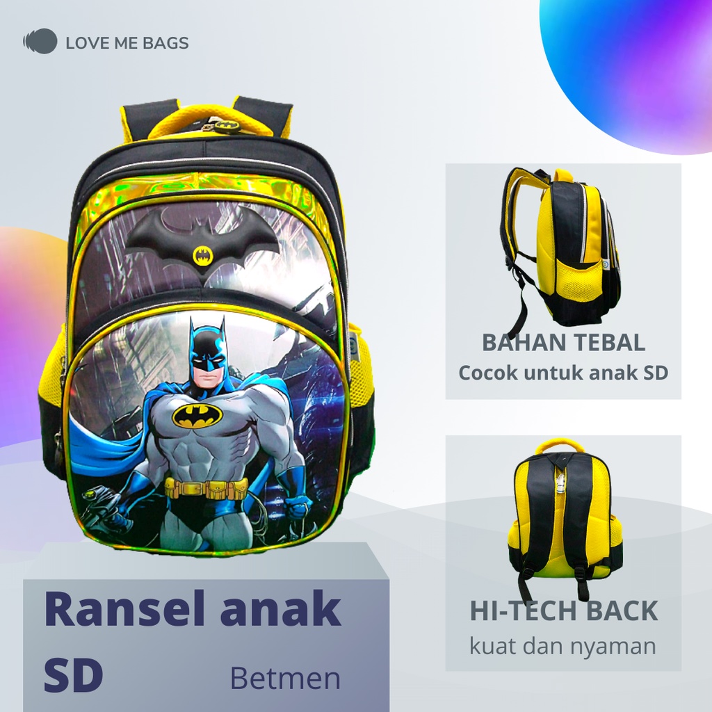 Harga LMB Tas Anak Sekolah SD Laki Laki Import Gambar Karakter Superhero Timbul 6D Hologram Bahan Nilon Premium Tebal