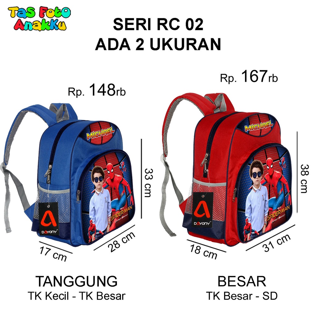 Harga Tas Anak TK Paud Laki Laki Sekolah Ransel Karakter Spiderman Tas Foto Anakku RC 02 DAYONY