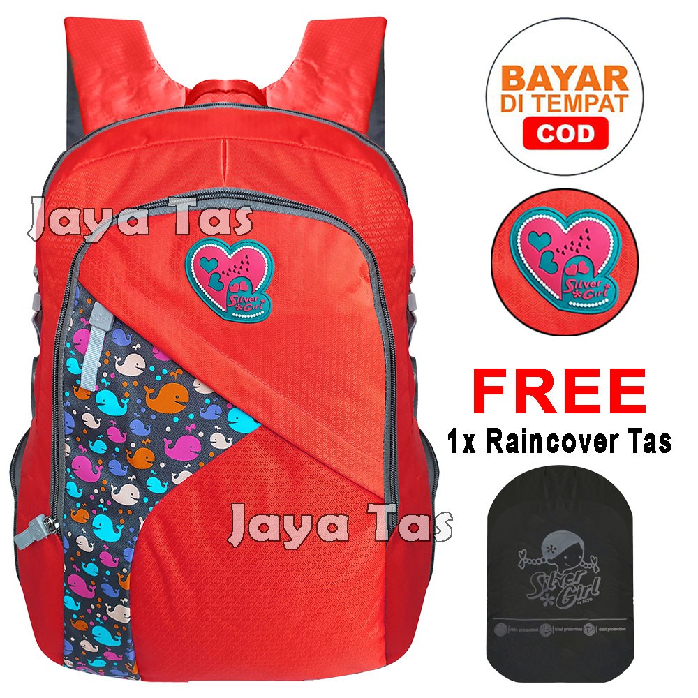 Kelebihan - Kelebihan membeli Tas Ransel Sekolah Anak Perempuan Alto Silver Girl Whale Orange + Raincover Tas anak Tas Wanita di Toko ini