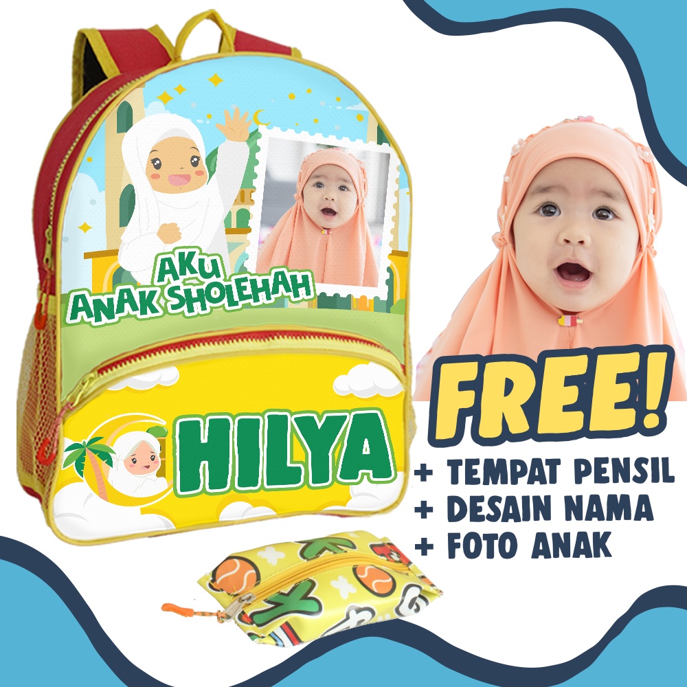 Kelebihan - Kelebihan membeli [1 HARI JADI] Tas Anak Custom Foto+Nama Anak Sholehah Muslim/ Tas Anak PAUD [Dexter] GDkids.id di Toko ini