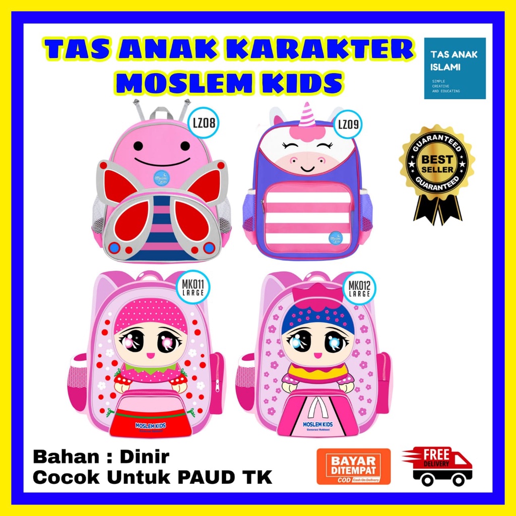 Harga Moslem Kids Tas Anak Laki laki dan Perempuan Paud TK Karakter Lucu Bahan Dinir