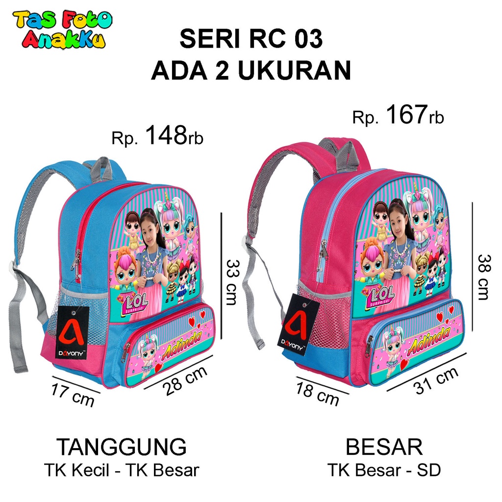 Harga Tas Anak TK Paud Perempuan Sekolah Ransel Karakter LOL Tas Foto Anakku RC 03 DAYONY
